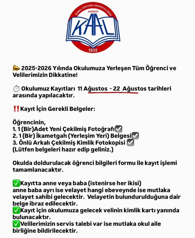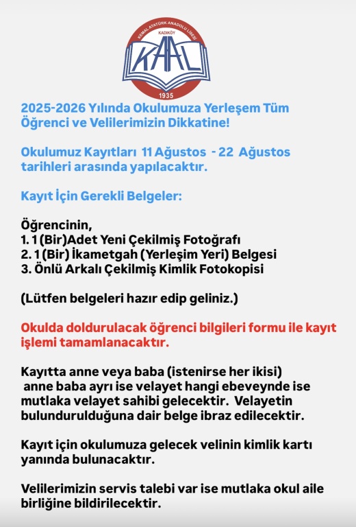 2025-2026 Eğitim Öğretim Yılında Okulumuza Yerleşen Tüm Öğrenci ve Velilerimizin Dikkatine!